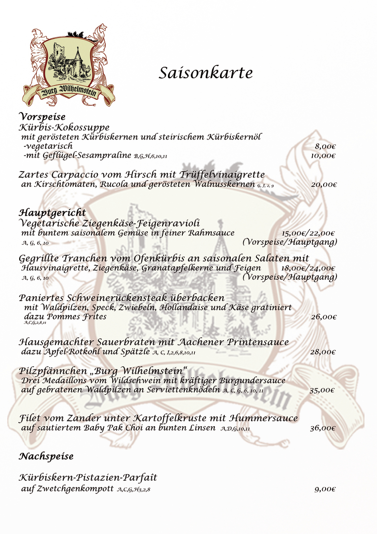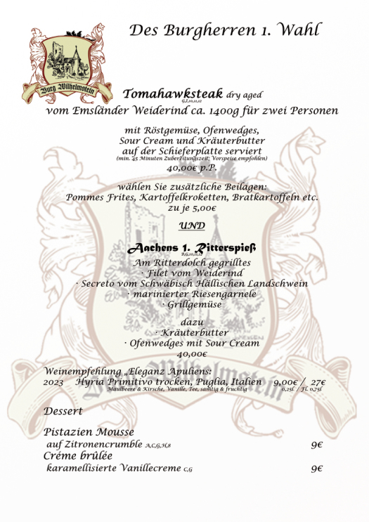 Reservierungen wir immer unter 02405/85201 oder info@burgwilhelmstein.de