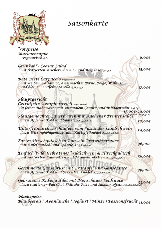 Reservierungen wie immer gerne unter der 02405/85201 oder info@burgwilhelmstein.de